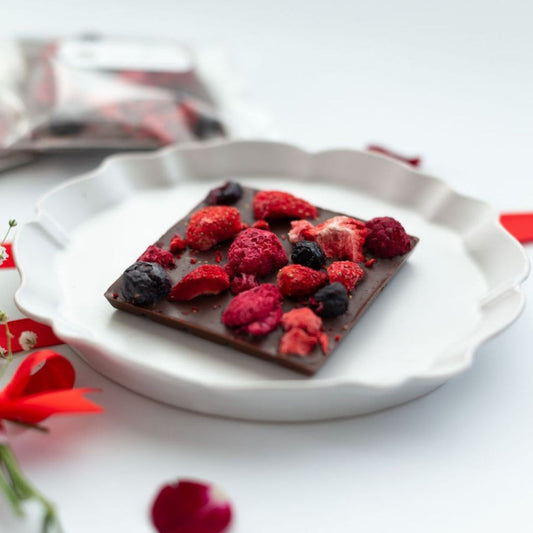 いちごの香りと酸味、ビターなチョコレートの組み合わせが美味しかったです。抗がん剤治療中で食欲がないので、少しずつ食べられて栄養価も高いこちらのチョコレートをいただくと安心感があります。お守りみたいな感覚です。