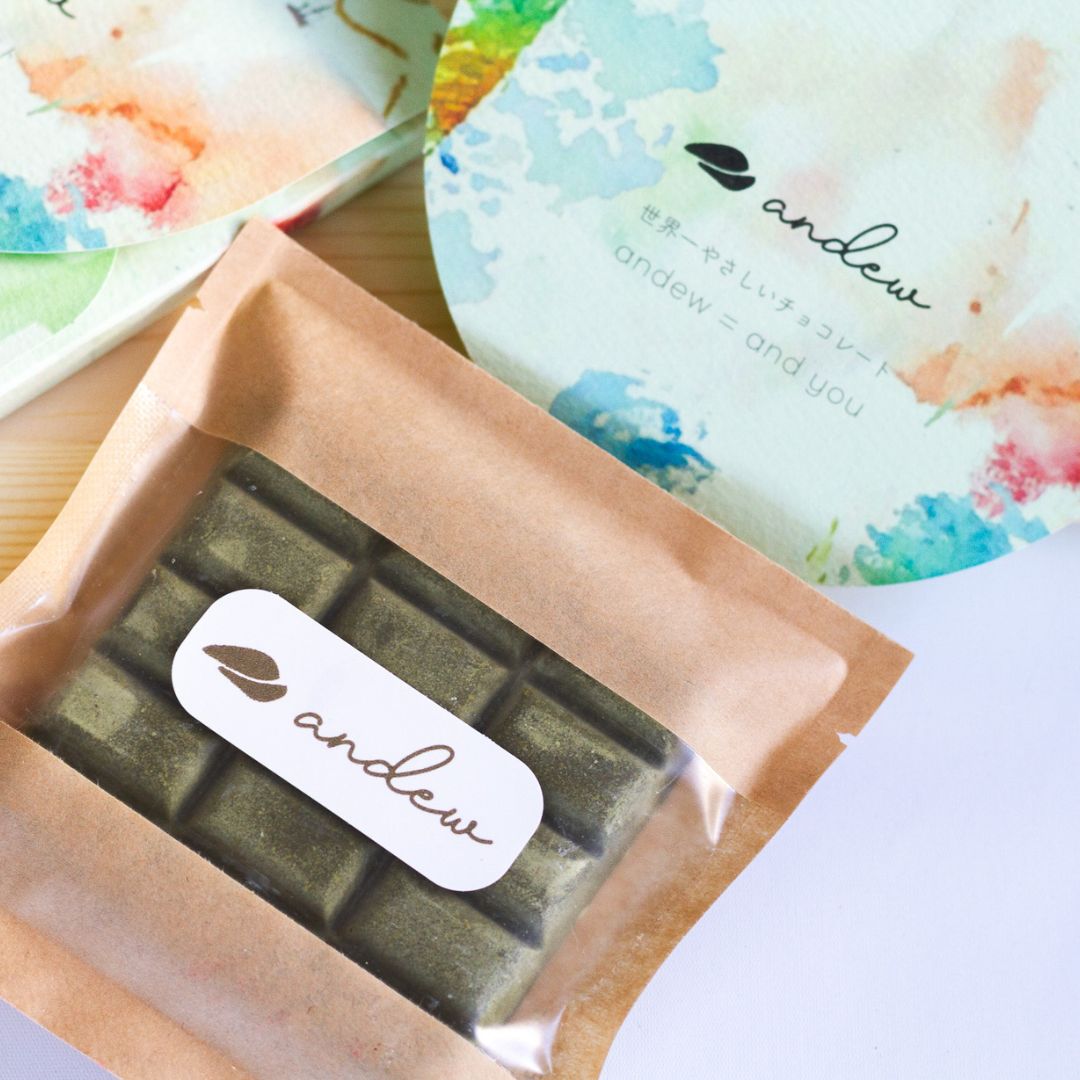 カカオバター、甜菜糖、抹茶、アーモンド、きなこ(大豆を含む)、ココナッツ、チアシード、ポピーシード、塩、昆布 / ビタミンA、ビタミンB1、ビタミンB2、ビタミンB6、ビタミンB12、ビタミンC、ビタミンD、ビタミンE、ナイアシン、パントテン酸、葉酸、ビオチン、ビタミンK、モリブデン、リン、鉄、カリウム、カルシウム、亜鉛、銅、クロム、セレン、マンガン(全てシナモン、生姜等の植物由来)