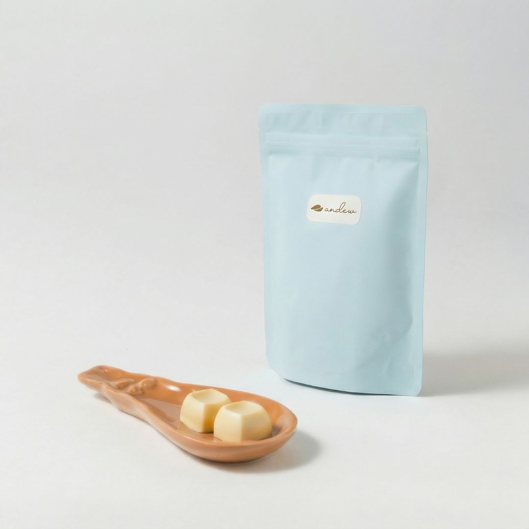 カカオバター、全粉乳、甜菜糖(国内製造)、アーモンド、きなこ(大豆を含む)、ココナッツ、チアシード、ポピーシード、塩、昆布 / ピロリン酸第二鉄、葉酸、ビタミンB12、ビタミンA、ビタミンB1、ビタミンB2、ビタミンB6、ビタミンC、ビタミンD、ビタミンE、ナイアシン、パントテン酸、ビオチン、ビタミンK、モリブデン、リン、鉄、カリウム、カルシウム、亜鉛、銅、クロム、セレン、マンガン (シナモン・生姜等の植物由来)
