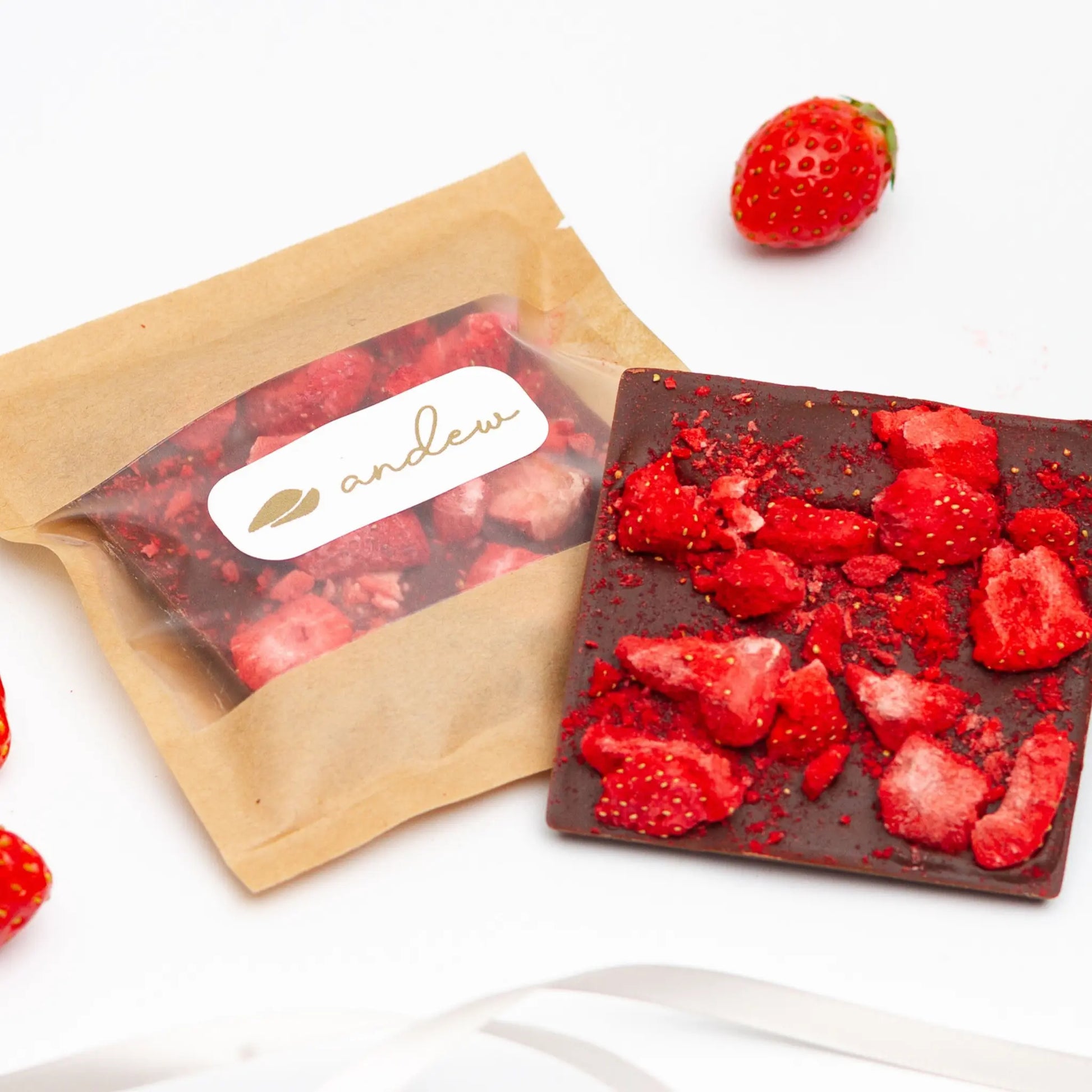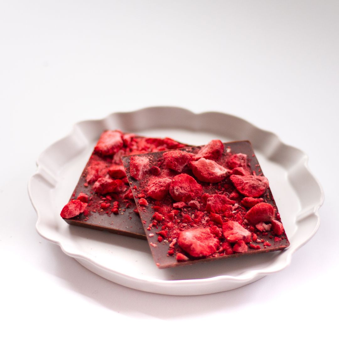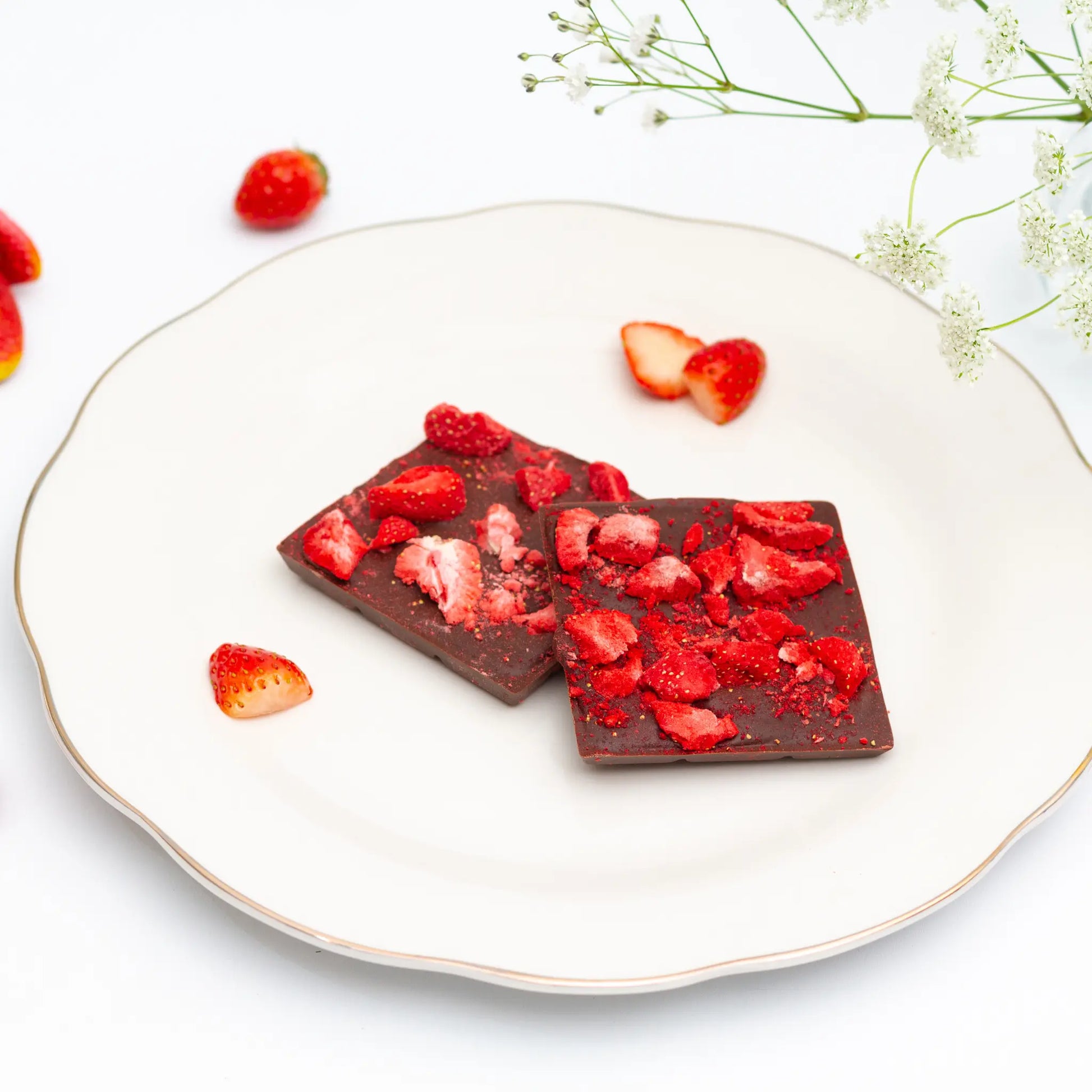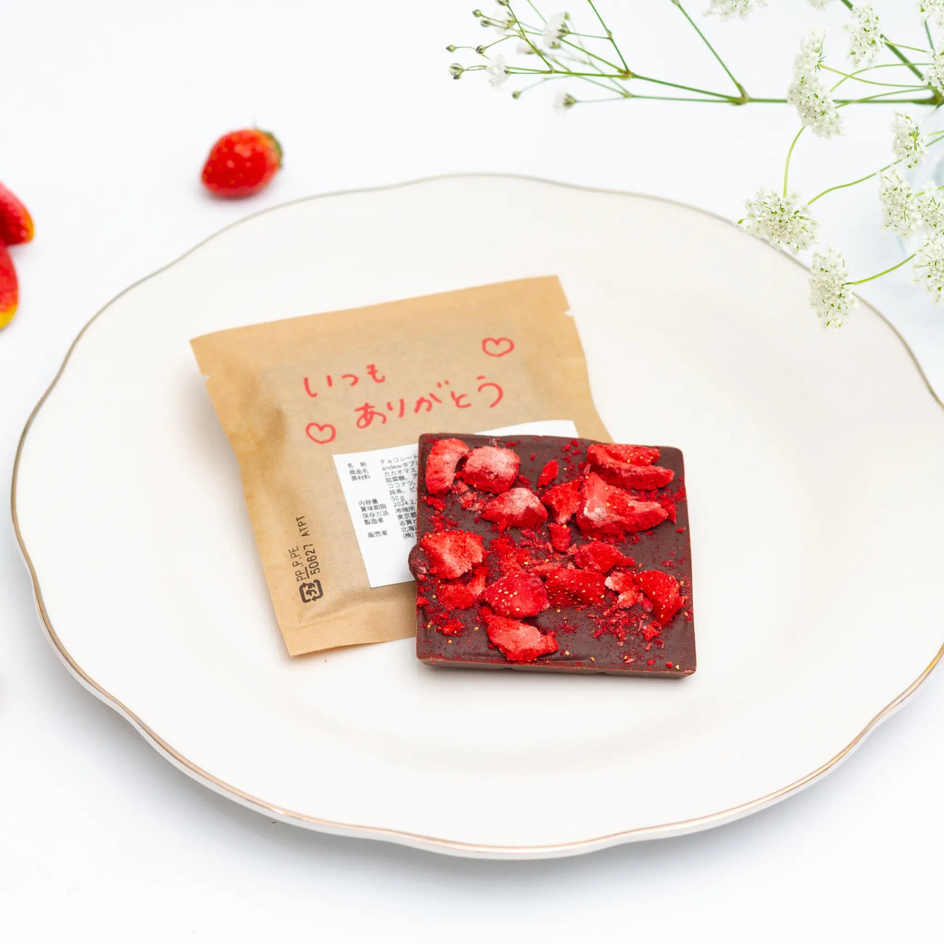 いちごの香りと酸味、ビターなチョコレートの組み合わせが美味しかったです。抗がん剤治療中で食欲がないので、少しずつ食べられて栄養価も高いこちらのチョコレートをいただくと安心感があります。お守りみたいな感覚です。